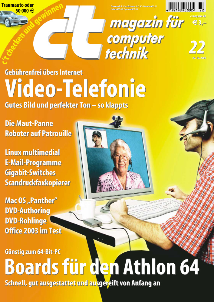 Hannover, 19. Oktober 2003 - Videotelefonie über das Internet ist günstiger als ein Ortsgespräch, inzwischen äußerst funktionstüchtig und macht viel mehr Spaß. Doch wer zur falschen Software greift, kann unter Umständen statt bei der Oma bei Cybersex-Anhängern landen, so das Computermagazin c't in der aktuellen Ausgabe 22/03.